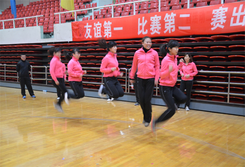 8人的集體跳繩比賽對運動員的耐力和齊整度是一個不小的考驗,我公司參加運動員完成了49次的有效好成績!