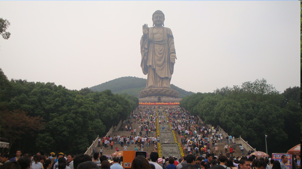 前往無錫靈山大佛的路上我們經(jīng)過了太湖。宏大飄渺的太湖水,給人沉靜的力量,非常優(yōu)美。靈山大佛為華夏之東方大佛,高高的佛矗立在山顛莊嚴(yán)寶相,梵宮坐落靈山大佛腳下,氣勢恢宏的建筑與寶相莊嚴(yán)的靈山大佛比鄰而立,靈山梵宮的建筑形式突破傳統(tǒng),大量運用高大的廊柱、大跨度的梁柱、高聳的穹頂、超大面積的廳堂等,運用精妙的燈光變幻,精致的佛雕佛像,既體現(xiàn)佛教的博大精深與崇高,又將傳統(tǒng)文化元素與鮮明時代特征相融合。 聽導(dǎo)游所講造價約17億,17億花在這個地方不知道是否可惜,但確實太值得游歷了,這里的美輪美奐和宏大偉岸已經(jīng)做到了極致。這個景點最有看頭是九龍灌浴,大型音樂動態(tài)群雕“九龍灌浴,花開見佛”再現(xiàn)了故事中的絢麗景象。