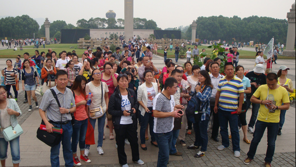 經(jīng)過火車24個小時的顛簸,終于抵達(dá)旅行的第一站——南京。地接導(dǎo)游已經(jīng)在那里等我們,導(dǎo)游非常有特點,喜歡把她從小到大自身的事件結(jié)合當(dāng)?shù)氐臍v史風(fēng)情娓娓道來,讓我們不禁沉浸其中,印象深刻。去南京主要就是觀賞“兩明(民)文化”,即明朝文化、民國文化。我們的第一站即孫中山的紀(jì)念地——中山陵景區(qū)。去的大路兩旁林木成蔭,巍峨疊嶂,一路近百年的法國梧桐,別樣風(fēng)情。中山陵堂依山而建,態(tài)勢舒展,既莊嚴(yán)肅穆,又有一種居高臨下的王者風(fēng)范。走過博愛坊,沿著陵道拾級而上,兩旁遍植著四季常青的高大雪松和被稱作“八爪金盤”的花兒。陵門牌匾上鐫刻著的金色字體“天下為公”更昭示著中山先生的博大胸襟。站在陵堂前的平臺上回首遠(yuǎn)眺,歷經(jīng)歲月風(fēng)雨的南京城盡收眼底。