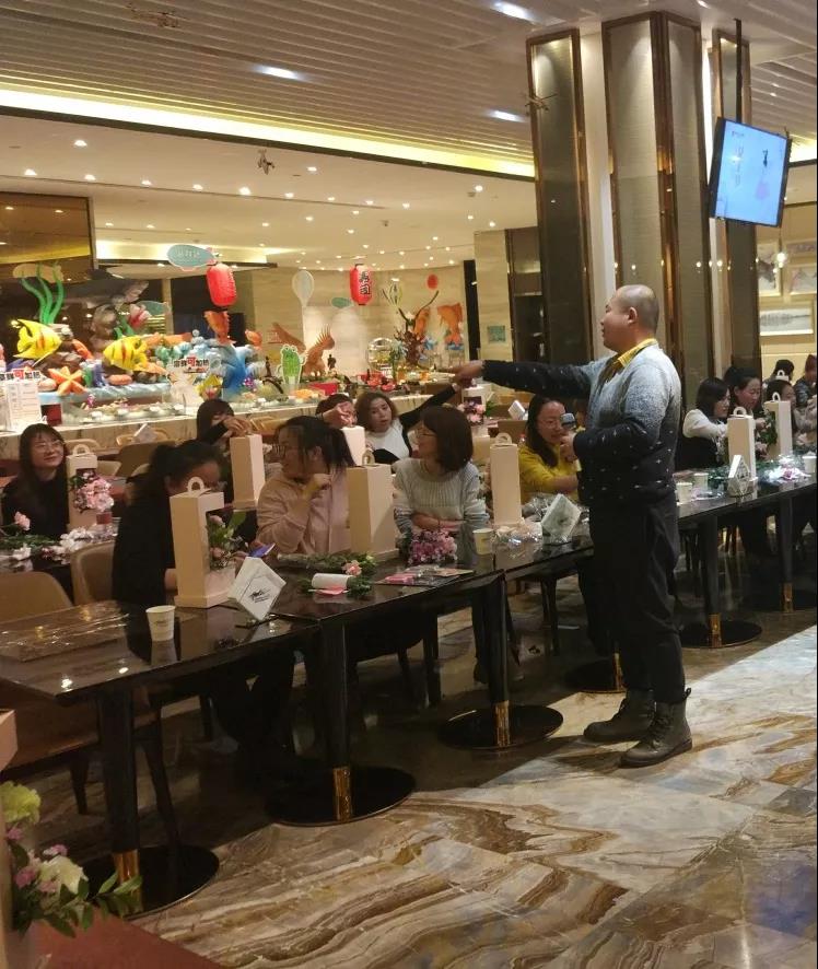 口紅制作師及花藝培訓(xùn)師首先對花藝?yán)碚撝R進(jìn)行了介紹,從材料、容器、色彩搭配等方面,詳細(xì)介紹了口紅制作及插花的藝術(shù)造型要素和技巧手法,并在現(xiàn)場做了生動的演示。