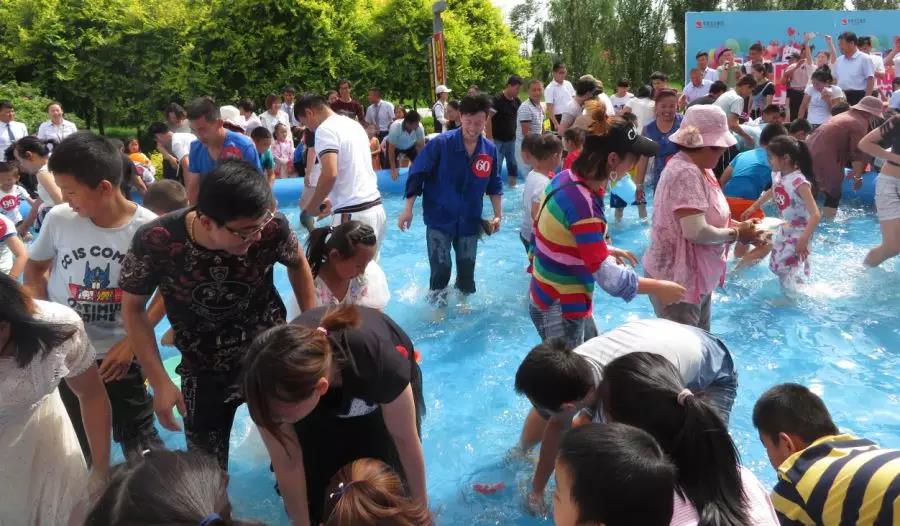 首先進(jìn)行的是摸魚大賽,活動現(xiàn)場布置了藍(lán)色海洋球池,其中放入近200余條鯉魚、鰱魚及鯽魚,捉到魚兒盡可帶回家烹飪美味,客戶盡情的享受了捕魚之樂,最后魚兒們被一一“捉拿歸案”!