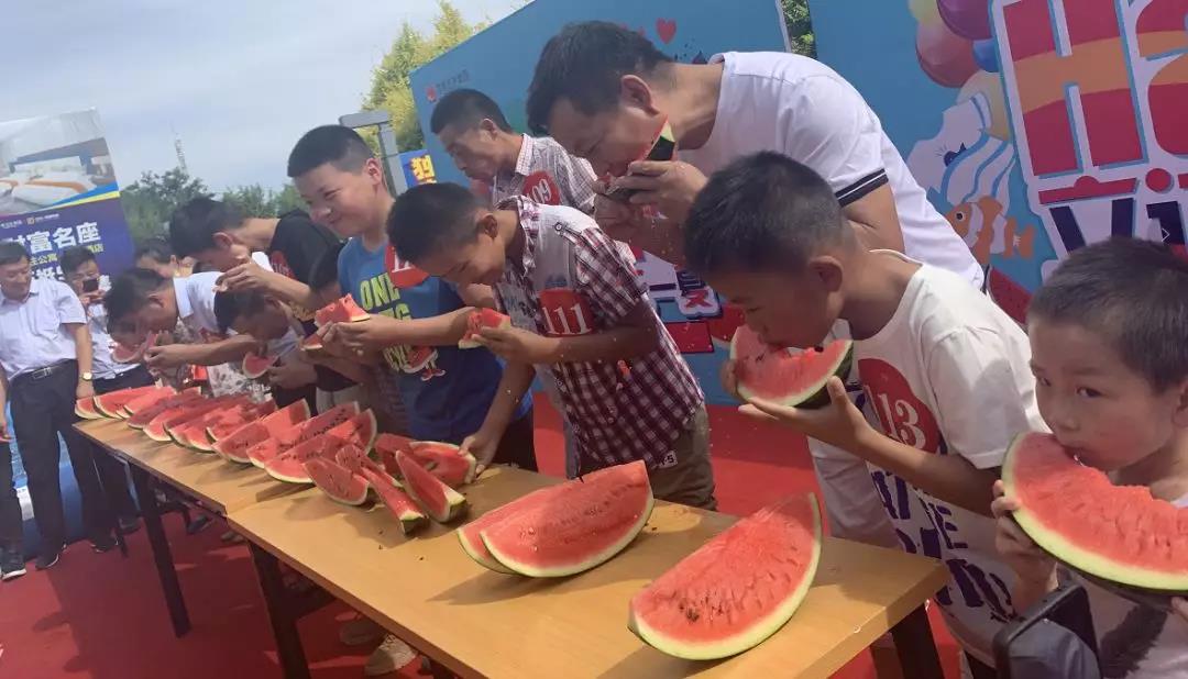 別開生面的吃西瓜比賽。翠綠的皮、鮮紅的瓤、瓜香四溢,甘甜多汁,一塊塊甘甜可口的西瓜擺在桌上,隨著主持人一聲令下,選手們各顯神通、吃相無關(guān)好壞,吃者過癮,觀者開心,現(xiàn)場熱鬧非凡。