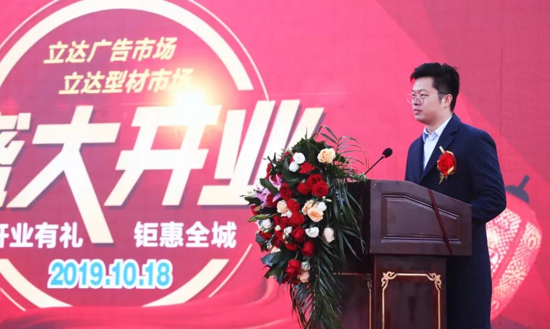 立達型材廣告市場商戶代表金港廣告標(biāo)識總經(jīng)理周圣飚先生致辭,周總回顧結(jié)緣立達及見證立達型材廣告市場的一路發(fā)展,同時他表示,在興慶區(qū)整治散亂污企業(yè)的背景下,立達為重振銀川商貿(mào)批發(fā)業(yè)所作出的貢獻與成績是有目共睹的。立達型材廣告市場為廣大經(jīng)營商戶提供了優(yōu)質(zhì)的發(fā)展平臺,他呼吁行業(yè)同仁緊抓當(dāng)前發(fā)展機遇,積極配合市場運營,共同謀劃發(fā)展之路。與立達一道將市場打造成銀川地區(qū)規(guī)模最大、品類最全、運營最規(guī)范、交易量最高的型材廣告專業(yè)市場。