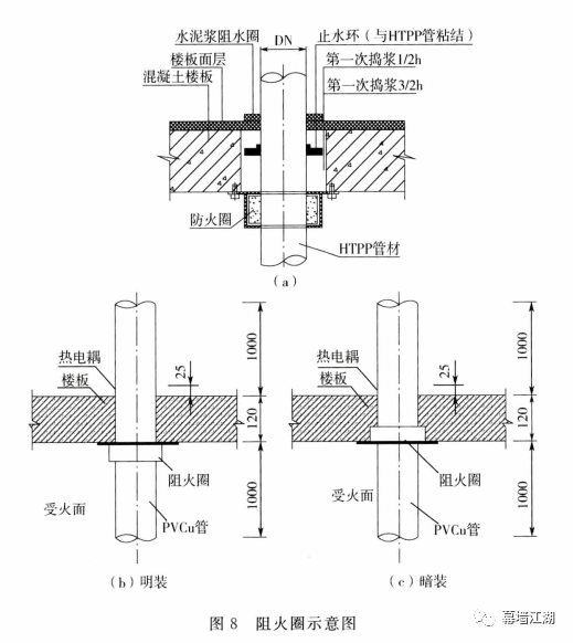 2 應(yīng)將阻火圈套在貫穿管道上;