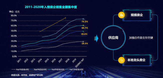 第一,總量拐點(diǎn)大背景下,行業(yè)集中度會(huì)進(jìn)一步加強(qiáng),強(qiáng)者更強(qiáng),這是行業(yè)未來(lái)最重要的特點(diǎn)。加大與規(guī)模房企及本地龍頭企業(yè)的合作,是供應(yīng)商后續(xù)生存的關(guān)鍵。行業(yè)規(guī)模越來(lái)越集中,未來(lái)供應(yīng)商應(yīng)該更多找尋高潛客戶,加強(qiáng)與規(guī)模房企及本地頭龍企業(yè)的合作,這會(huì)成為常態(tài)。比如說(shuō)濱江模式,1000億的銷售額一共不超過(guò)8家總包單位,這就是未來(lái)的常態(tài)。
