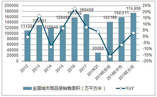 2018年全國城市商品房銷售面積及增速展望